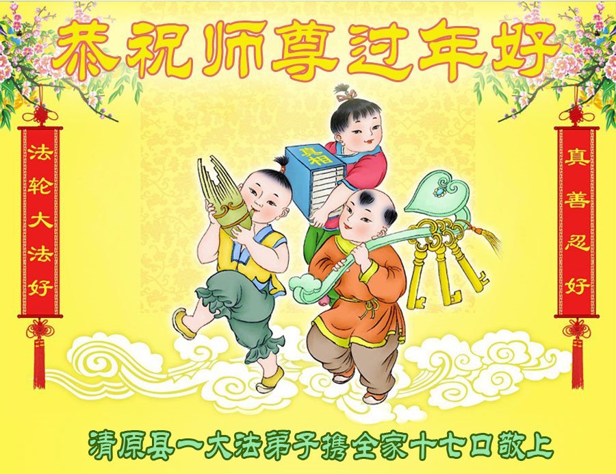 辽宁省抚顺市清原县一大法弟子携全家十七口恭祝师尊过年好!