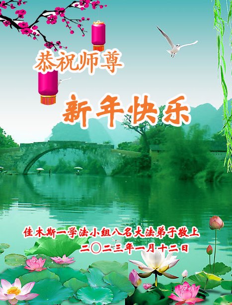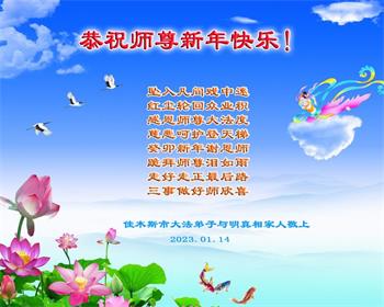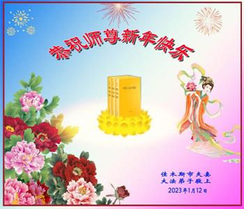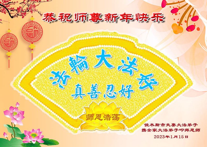 【明慧网二零二三年一月二十日】 黑龙江省佳木斯夫妻大法弟子携全家大法弟子恭祝师尊新年快乐!