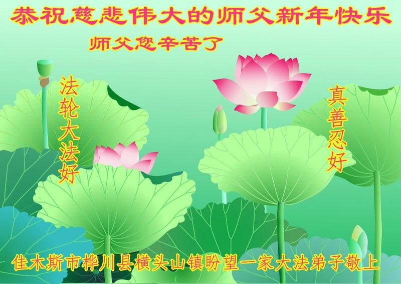 感谢师尊慈悲救度,师尊辛苦了!在今后的修炼中,弟子会多学法修心,多救人做好三件事,谢谢师尊! 黑龙江省佳木斯江边一大法弟子恭祝师尊过年好!