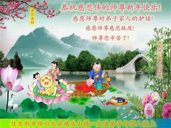 黑龙江省佳木斯一大法弟子携家人恭祝师尊新年快乐!
