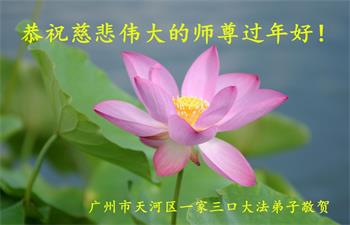 广东省广州市天河区大法弟子一家三人恭祝慈悲伟大的师尊过年好!