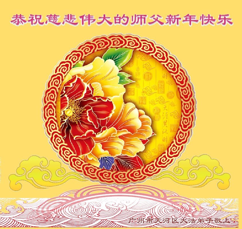 恭祝慈悲伟大的师父新年快乐! 广州市天河区大法弟子敬上 广东省广州五位大法弟子叩谢慈悲伟大的师尊!恭祝师尊新年快乐!