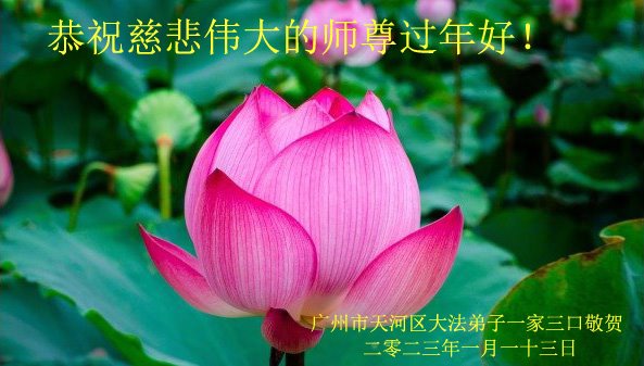 广州市天河区大法弟子一家三人敬贺 二零二三年一月十三日 广东省广州老年大法弟子恭祝师父新年快乐!