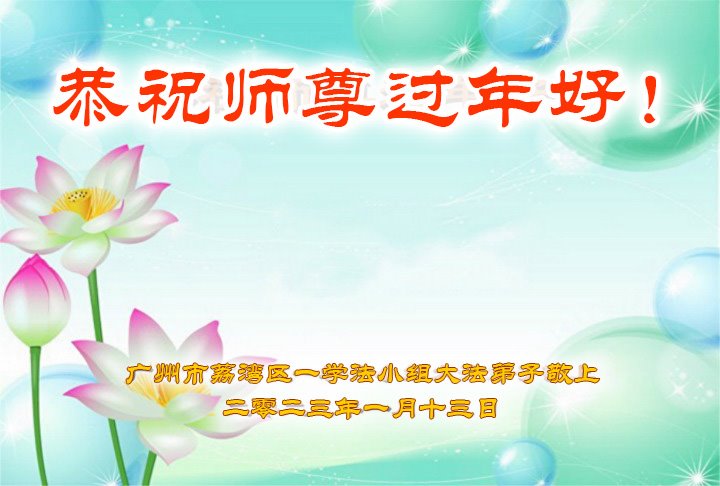 【明慧网二零二三年一月二十日】 广东省广州市荔湾区一学法小组大法弟子恭祝慈悲伟大的师尊过年好!