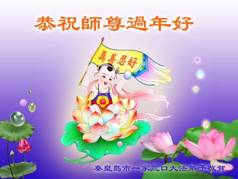 感恩师父的慈悲苦度!感谢师父对弟子全家的慈悲保护! 弟子全家都相信师父,相信法轮大法好、真善忍好,支持大法。 河北秦皇岛市一家三口大法弟子恭祝慈悲伟大的师尊过年好!