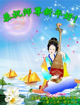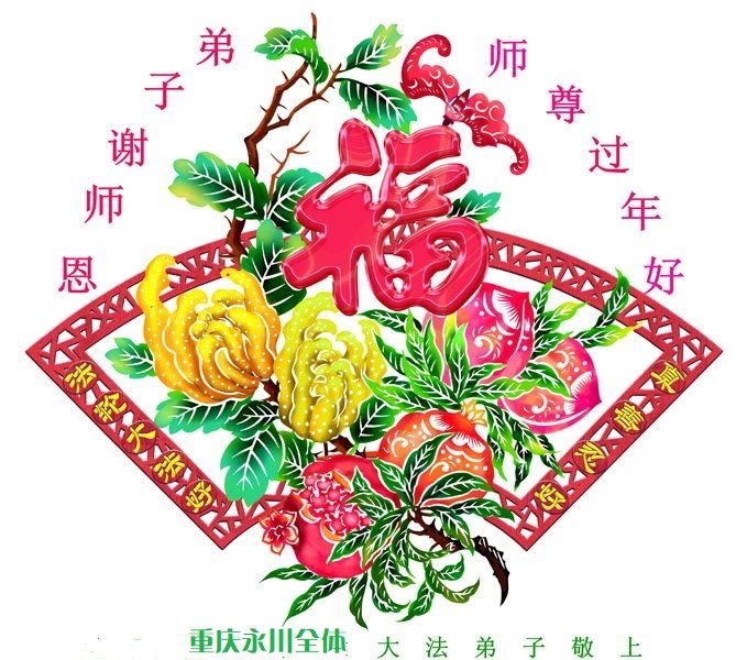 弟子无法用人类的语言表达对师父的感激,唯有做好三件事,做真修弟子,不辜负师父的慈悲苦度。 重庆市大渡口区大法弟子恭祝慈悲伟大的师尊过年好!