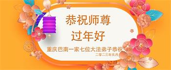 感恩师尊的慈悲保护!弟子们抓紧时间学好法,做好三件事,多救人。 重庆巴南一家七位大法弟子恭祝师父过年好!