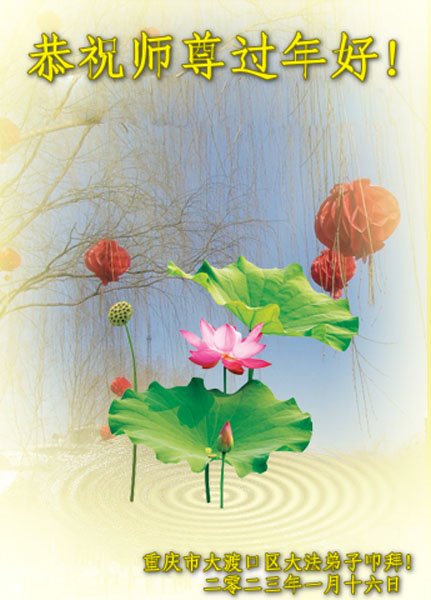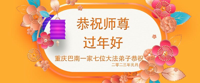 感谢师尊给了我第二次生命!在新的一年里我决心清除一切不好的人心,做一个实修、真修的大法弟子,不负师望,跟师父回家。 重庆市大渡口区大法弟子恭祝慈悲伟大的师尊过年好!