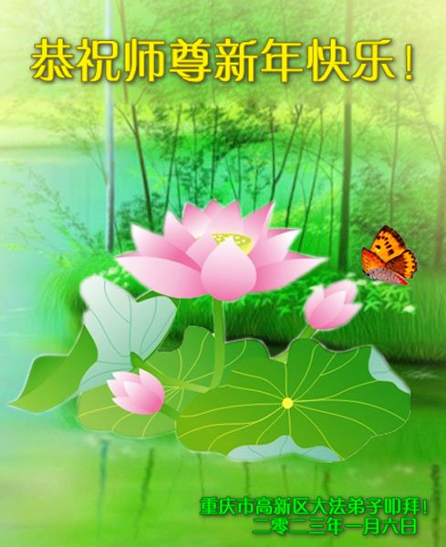 在这二零二三年中国传统新年来临之际,恭祝师父新年快乐!以最崇高的敬意感恩师父慈悲救度! 感谢师父给弟子延续来的生命,珍惜这万古机缘。感恩师父佛恩浩荡救穹宇!救度无量无计众生。弟子唯有精進实修,学好法,向内找,多救人,做好三件事,才能不辱使命。兑现自己誓约,圆满随师回家还。 重庆市沙坪坝双碑一大法弟子敬上 重庆江津大法弟子恭祝师父新年快乐!