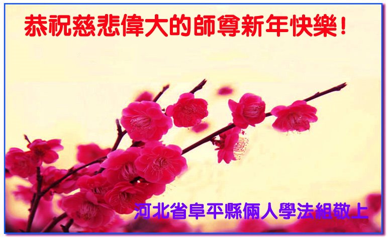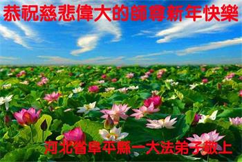 感谢师父的救度与保护。弟子一定听师父的话,做好三件事,做个合格的大法弟子,让师父少一份操劳,多一份欣慰。 河北省保定市唐县大法弟子恭祝慈悲伟大的师父新年好!