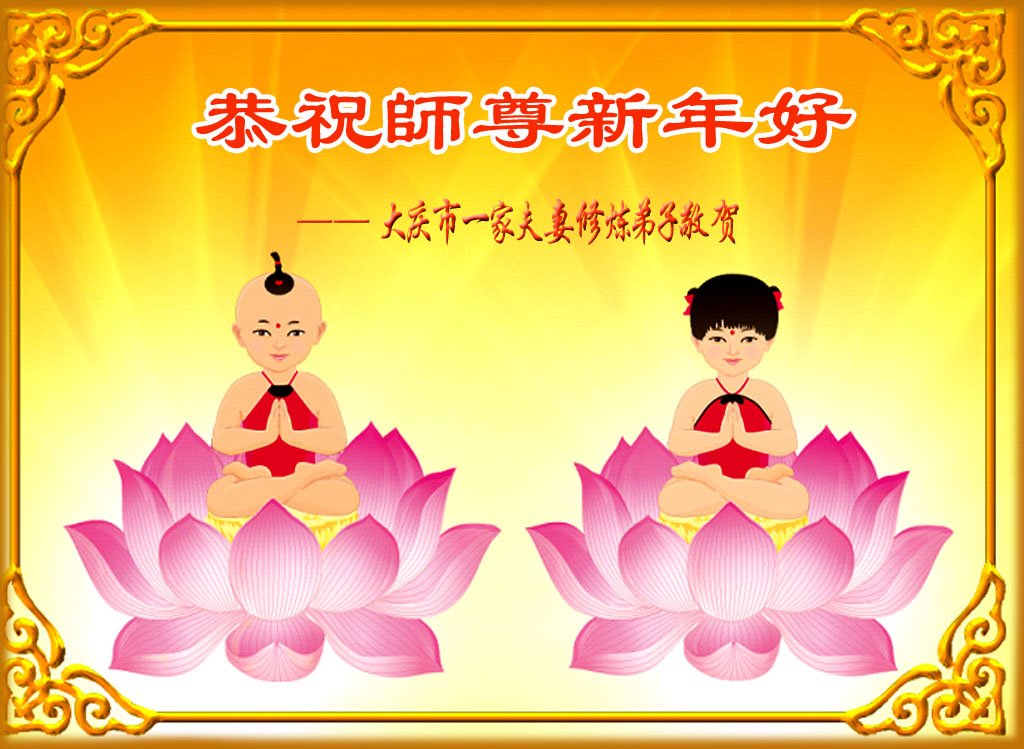 黑龙江省大庆市一家夫妻大法弟子恭祝师尊新年好!