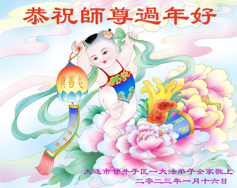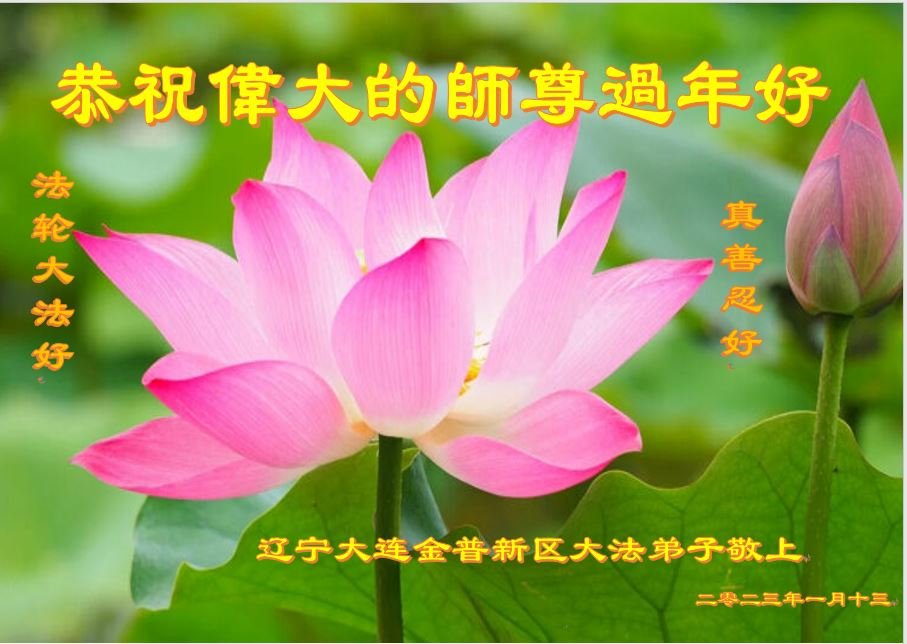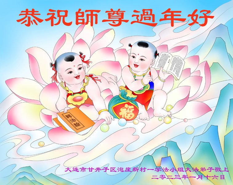 【明慧网二零二三年一月二十日】 辽宁省大连市金州区一学法小组大法弟子恭祝慈悲伟大的师父过年快乐!