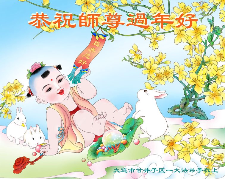 辽宁省大连市甘井子区一大法弟子代表全家恭祝师尊过年好!