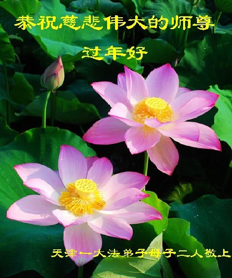 天津一大法弟子母子二人恭祝慈悲伟大的师尊过年好!
