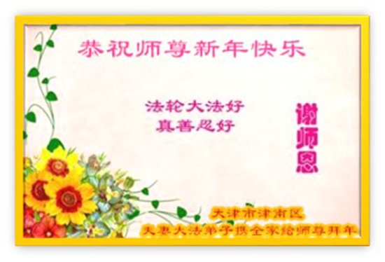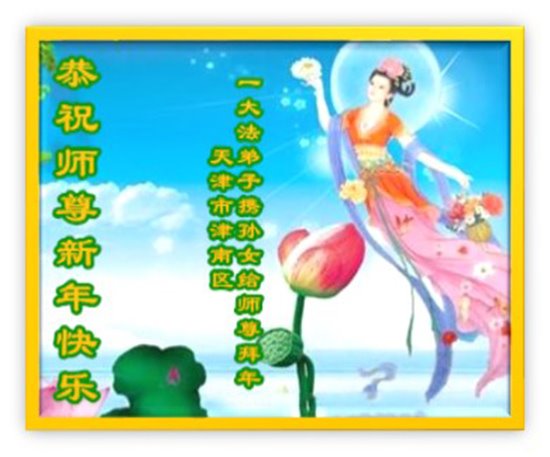 天津市津南区一大法弟子携全家给师尊拜年!恭祝师尊新年快乐!