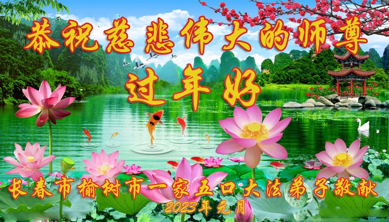 感恩师父慈悲救度及生生世世一路保护,在此给师父拜年,恭祝慈悲伟大的师父过年好! 吉林省长春市一个家庭学法小组全体大法弟子恭祝慈悲伟大师尊二零二三年新年快乐!