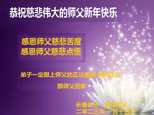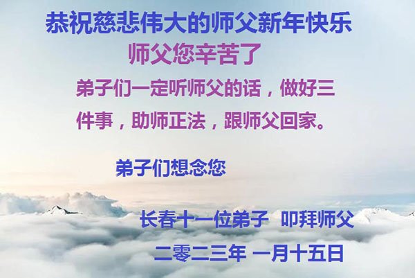 【明慧网二零二三年一月二十日】 吉林省长春一学法组全体大法弟子恭祝师尊新年快乐!