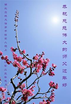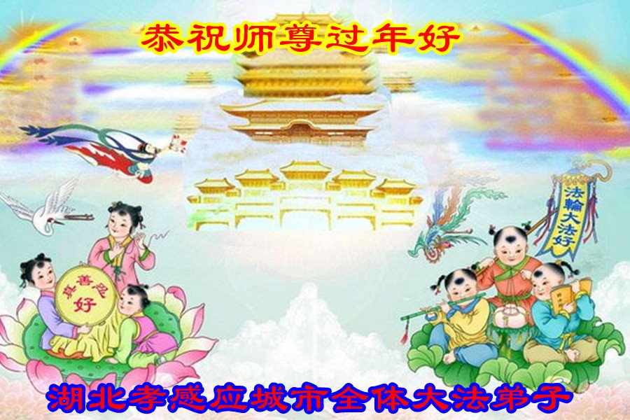 师父请放心,弟子们一定听您的教诲,修好自己、精進实修 ,多做三件事。 湖北孝感应城市东马坊全体大法弟子恭祝师尊过年好!