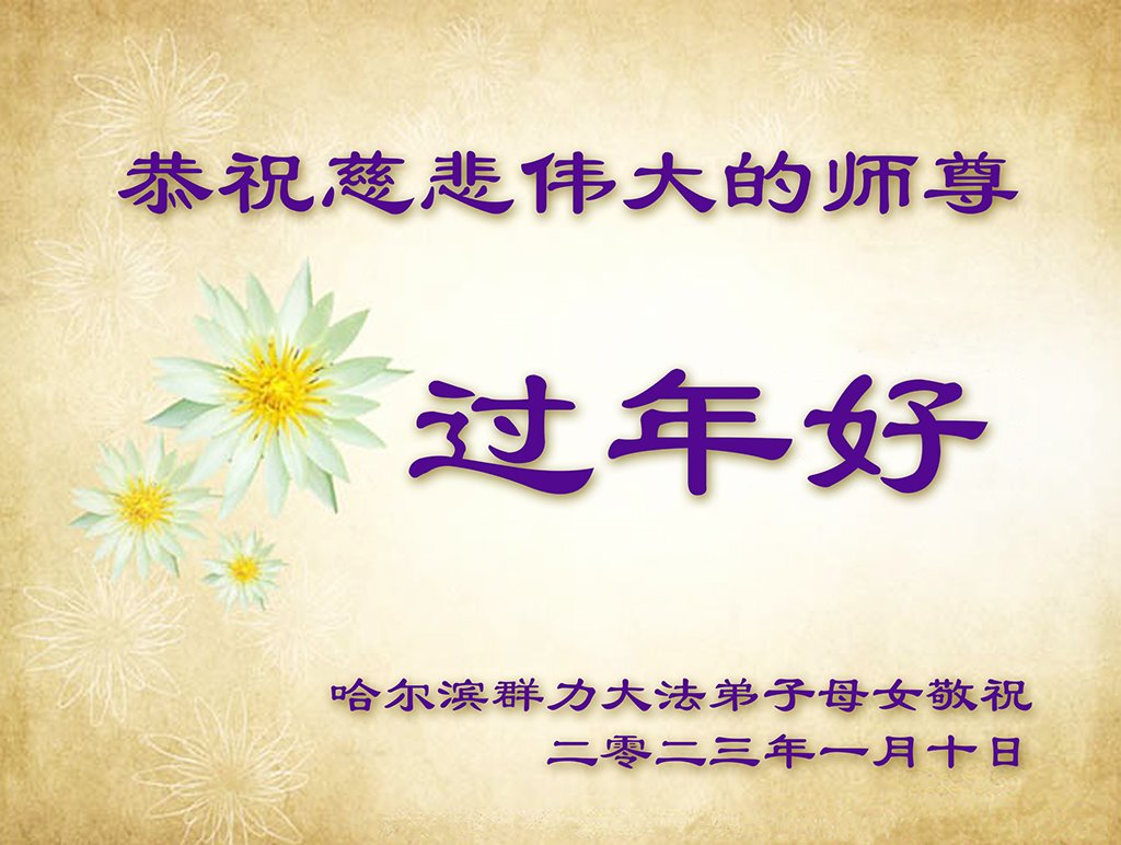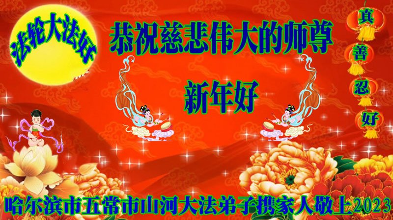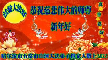 【明慧网二零二三年一月二十一日】 黑龙江省哈尔滨市阿城市区河东全体大法弟子恭祝慈悲伟大的师尊过年好!