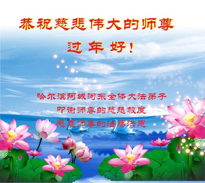 黑龙江省哈尔滨大法弟子恭祝慈悲伟大的师尊新年快乐!