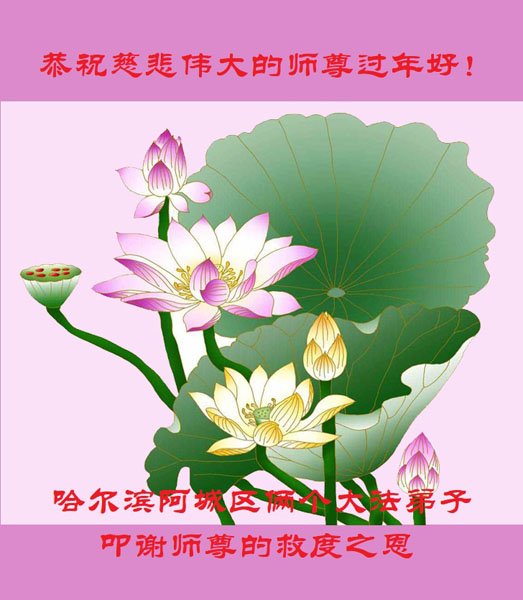 弟子深知今天所有存在的一切都是师父的恩典!弟子知道您为不争气的弟子操尽了心,弟子深感愧对师父! 今后弟子唯有做好三件事,以谢师父的洪恩!弟子叩谢师尊! 哈尔滨大法弟子敬上 黑龙江省哈尔滨市双城市十佳全体大法弟子恭祝伟大慈悲的师尊过年好!