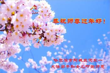 黑龙江省哈尔滨市阿城市区一大法弟子和女儿恭祝慈悲伟大的师尊过年好!