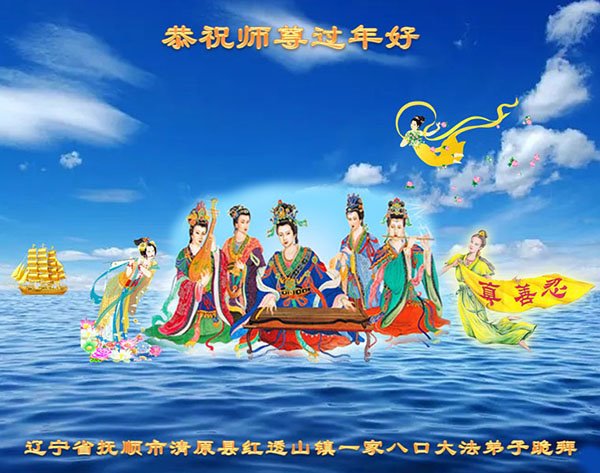 辽宁省抚顺市清原县红透山镇一家八口大法弟子恭祝师尊过年好!
