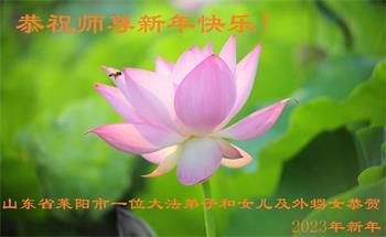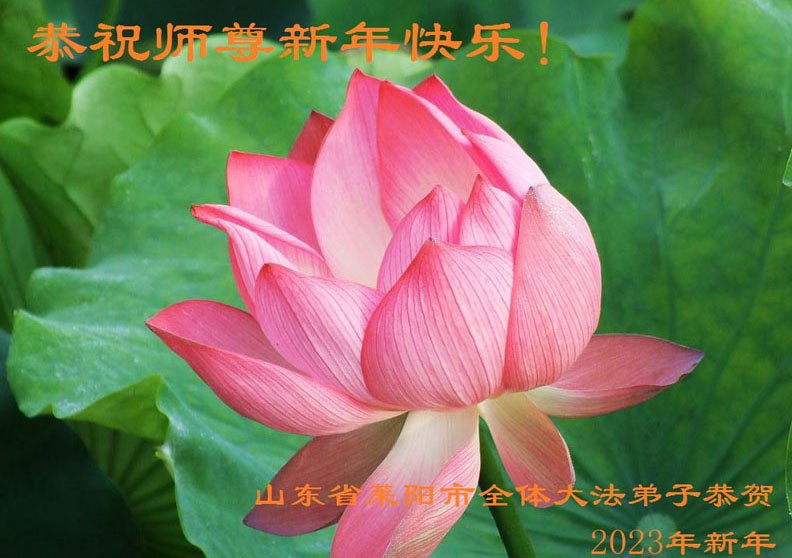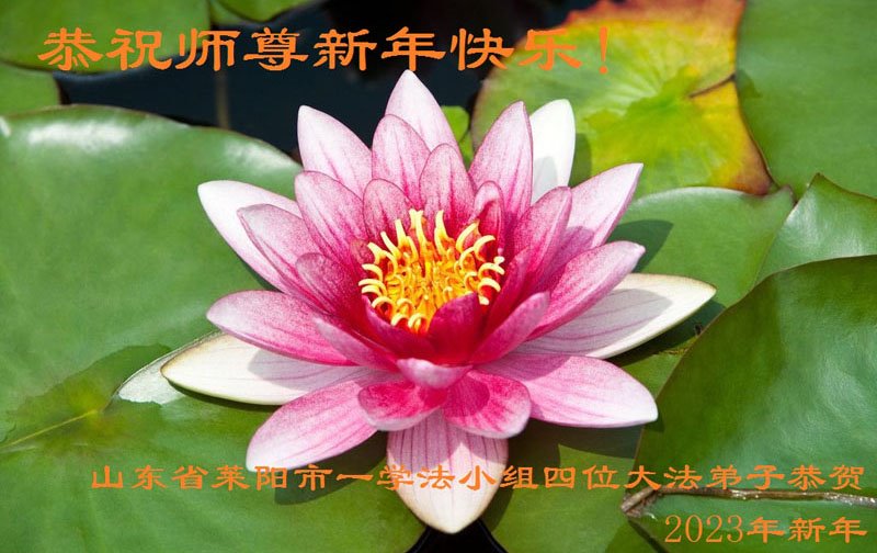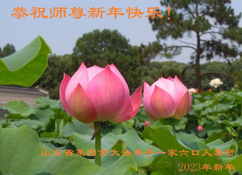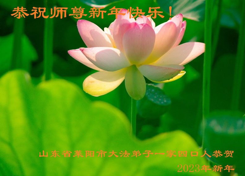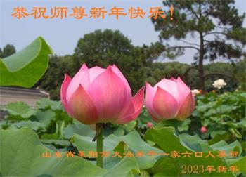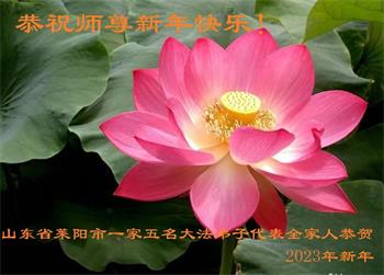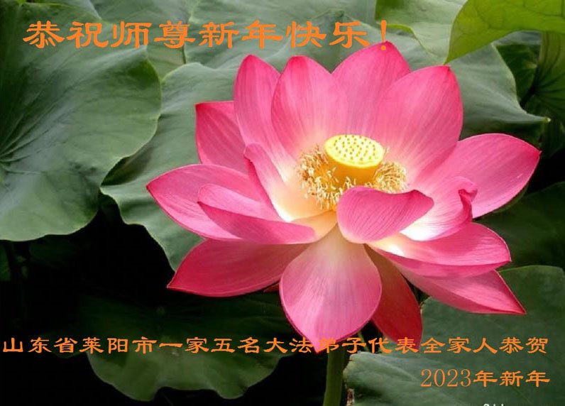 【明慧网二零二三年一月二十一日】 山东省烟台市莱阳市一家五名大法弟子代表全家八口人给慈悲伟大的师父拜年衷心恭祝慈悲伟大的师尊新年快乐!