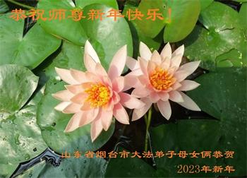 山东省烟台市大法弟子母女俩恭祝慈悲伟大的师尊新年快乐!