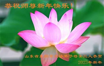 山东省烟台市莱阳市一位大法弟子和女儿及外甥女恭祝慈悲伟大的师尊新年快乐!
