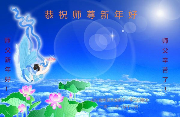 弟子们双手合十向师尊致以节日的问候:师父,您好!师父,您辛苦了!弟子感谢您的慈悲苦度! 山东省烟台市莱阳市大法弟子母女二人恭祝慈悲伟大的师尊新年快乐!
