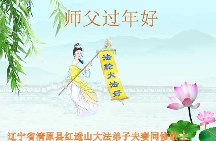 辽宁省抚顺市清原县大法弟子夫妻同修恭祝师尊过年好!