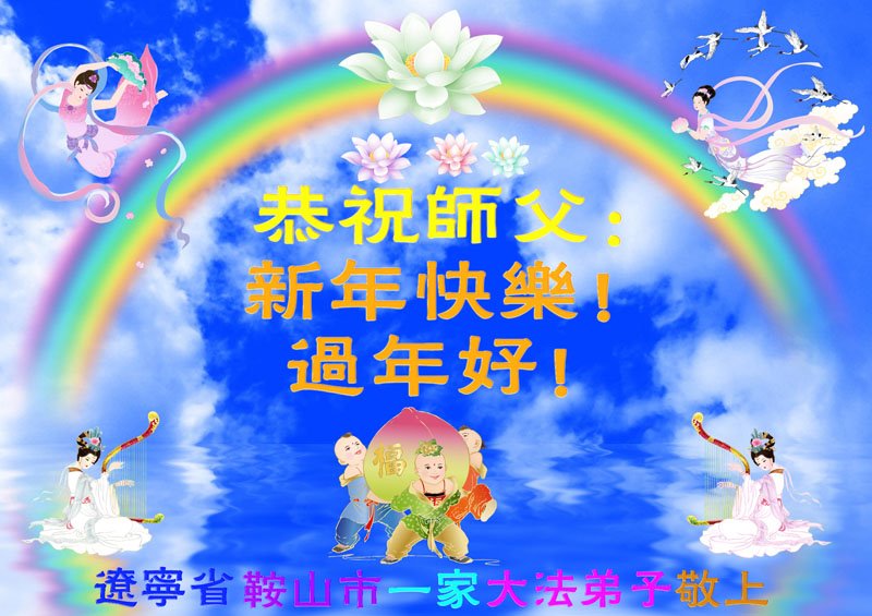 辽宁省鞍山市的一家大法弟子恭祝师父新年快乐!