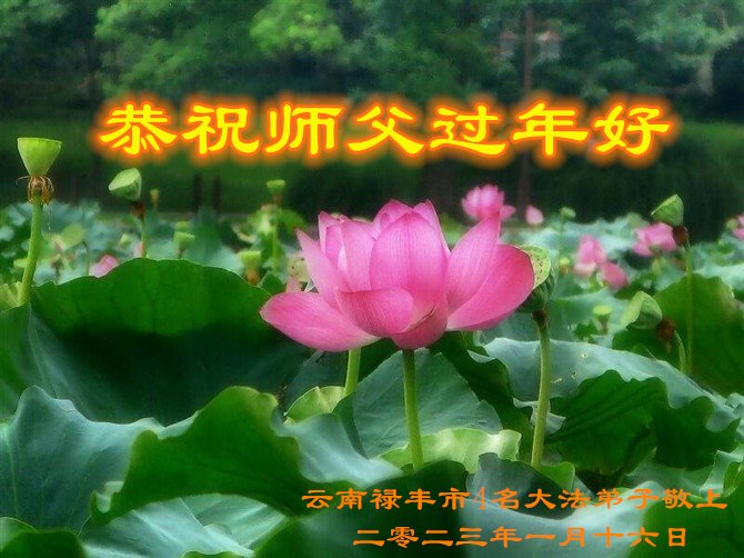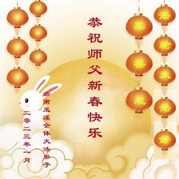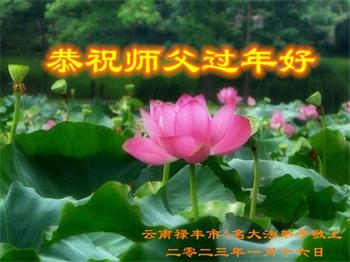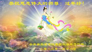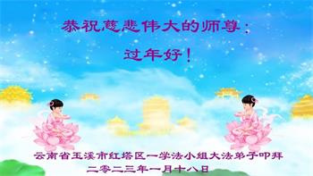 【明慧网二零二三年一月二十一日】 云南省昆明市北市区一学法小组大法弟子给师尊拜年了!恭祝师尊新年快乐!