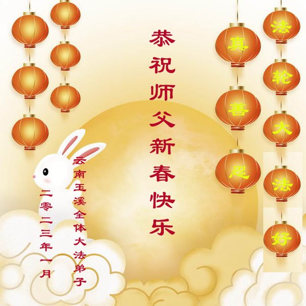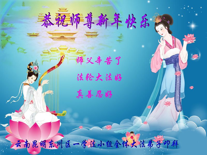 谢谢师尊慈悲苦度! 弟子一定做好三件事,不辜负师尊的救度,做合格的大法弟子。 云南省大法弟子恭祝师父新年快乐!