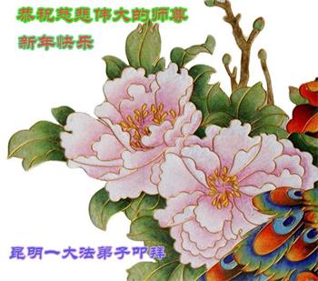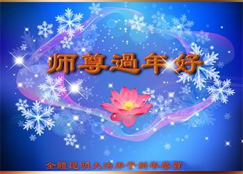昆明市一大法弟子恭祝慈悲伟大的师尊新年快乐!