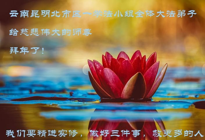 感恩师尊慈悲救度! 我们会在修炼的路上勇猛精進。 云南省昆明市一学法小组全体大法弟子恭祝师尊新年快乐!
