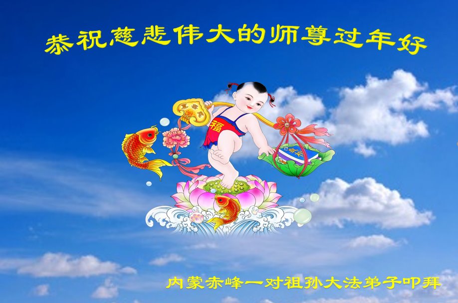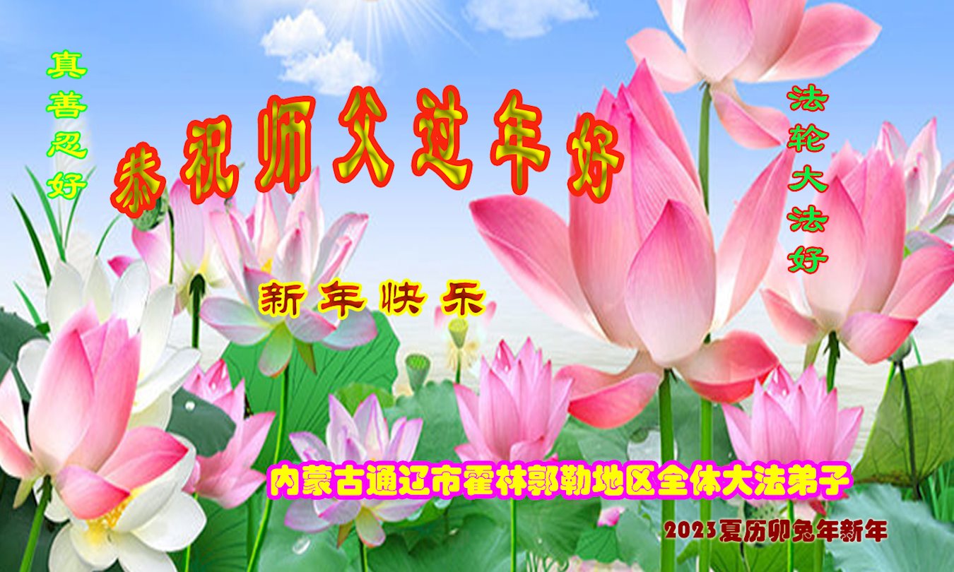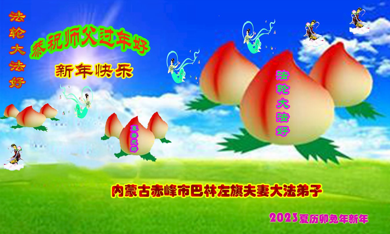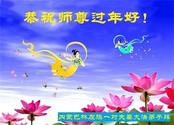 内蒙古通辽市霍林郭勒地区全体大法弟子给师父拜年:恭祝师父过年好!新年快乐! 内蒙古赤峰市巴林左旗夫妻大法弟子叩拜恩师!