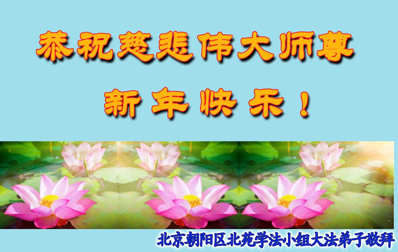 北京市朝阳区北苑学法小组大法弟子恭祝慈悲伟大的师尊新年快乐!