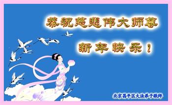 北京市朝阳区北苑学法小组大法弟子敬拜 北京市昌平区大法弟子恭祝慈悲伟大的师尊新年快乐!