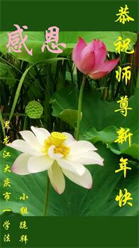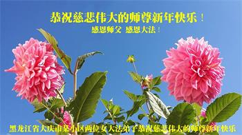 黑龙江省大庆市两名大法弟子及家人恭祝慈悲伟大的师尊新年快乐!