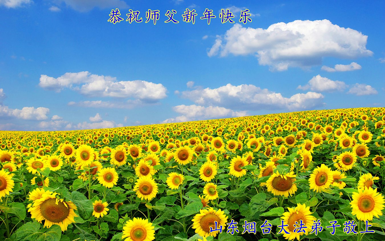 在这新年来临之际 弟子给师尊叩首 跪拜师尊的救度之恩 祝慈悲伟大的师尊新年快乐! 山东省滨州市阳信县全体大法弟子 山东省烟台市福山区一学法小组大法弟子恭祝慈悲伟大的师父新年好!