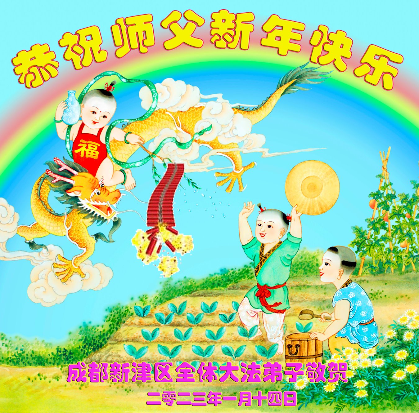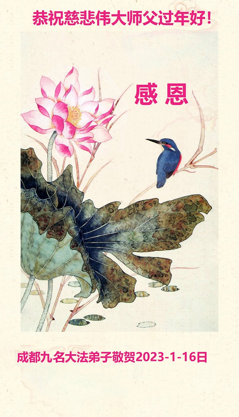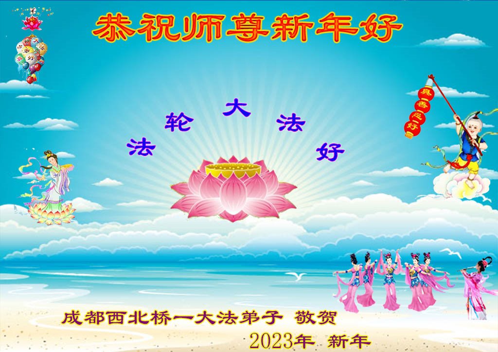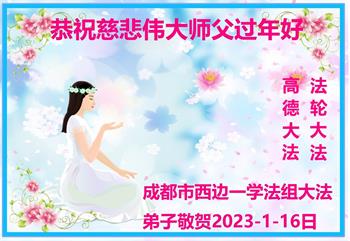 成都市青羊区、金牛区、成华区、锦江区部份大法弟子敬贺 二零二三年一月十六日 四川省成都市一大法弟子全家人恭祝伟大慈悲的师尊新年快乐!
