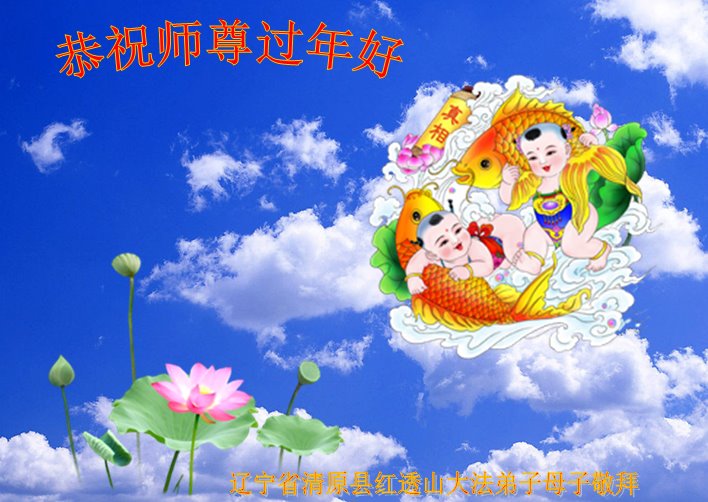 辽宁省抚顺市清原县红透山大法弟子母子恭祝师尊过年好!