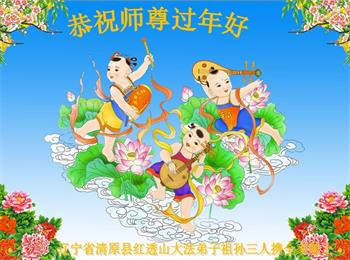 辽宁省抚顺市清原县红透山大法弟子祖孙三代恭祝师尊过年好!