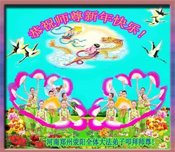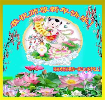 河南郑州市荥阳大法弟子恭祝慈悲伟大的师尊新年快乐!