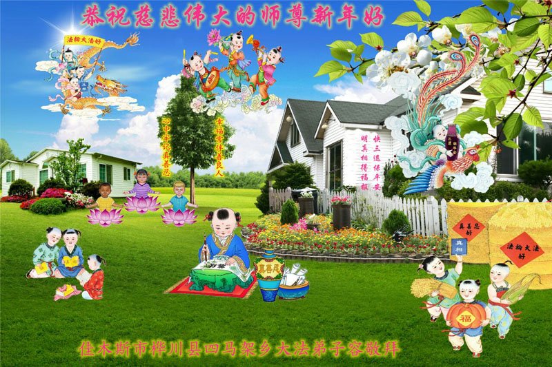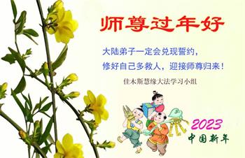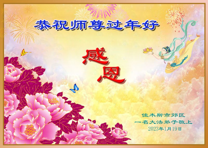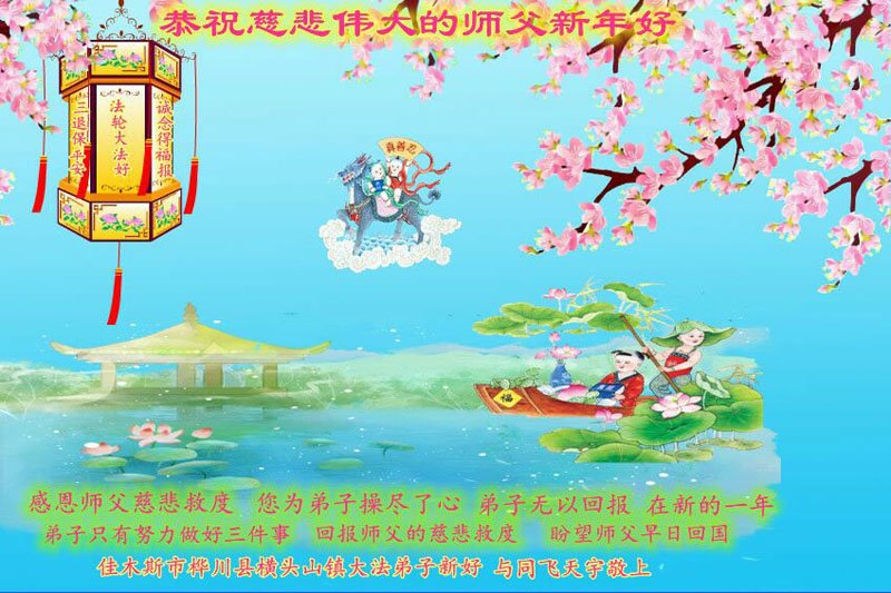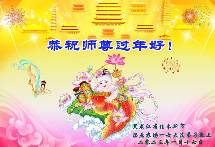 【明慧网二零二三年一月二十一日】 黑龙江省佳木斯市大法弟子及家人恭祝师父过年好!