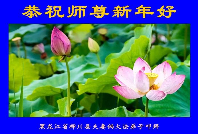 黑龙江省佳木斯市桦川县夫妻俩大法弟子恭祝师尊新年快乐!
