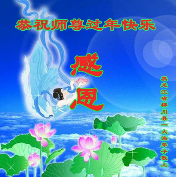 黑龙江省佳木斯市桦川县一大法弟子恭祝师尊过年快乐!