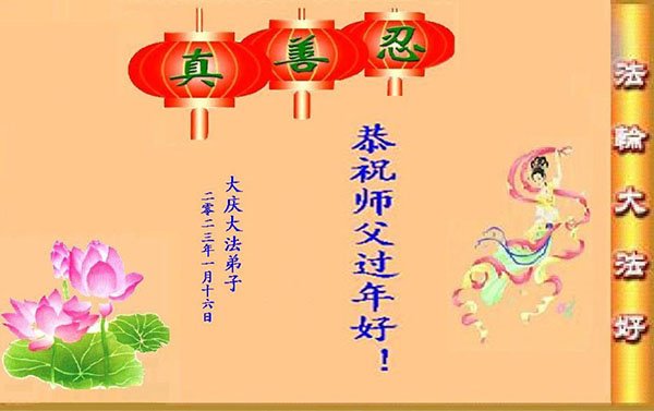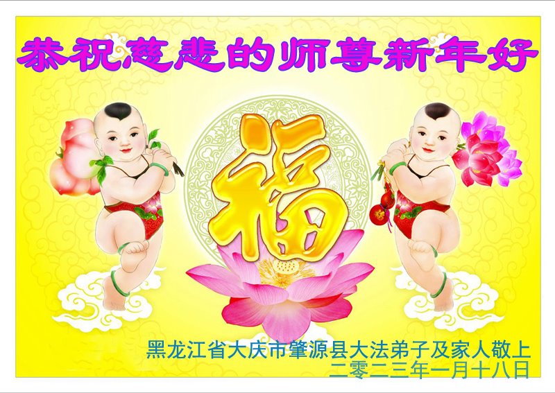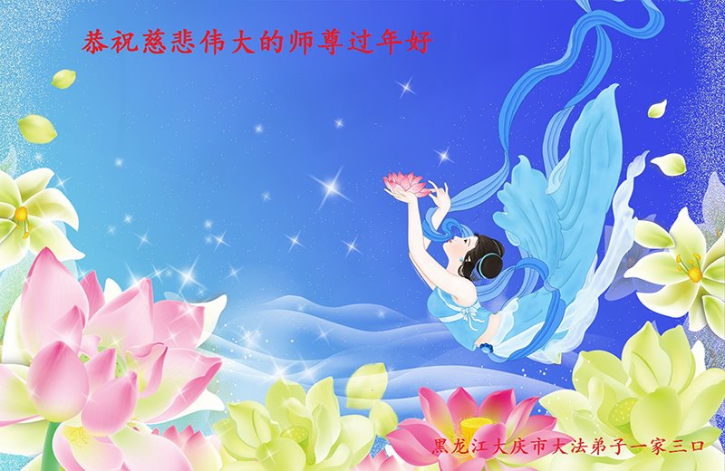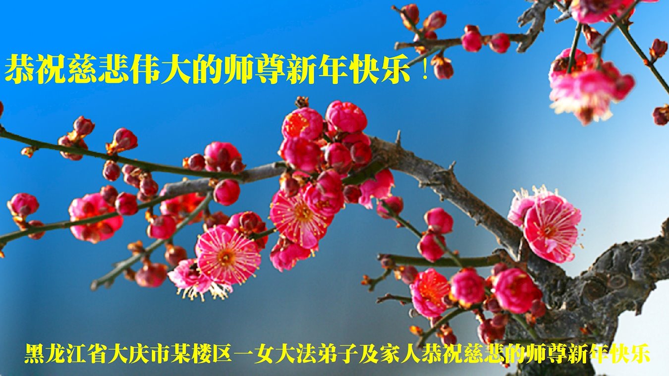 【明慧网二零二三年一月二十一日】 黑龙江省大庆市一女大法弟子及家人恭祝慈悲伟大的师尊新年快乐!